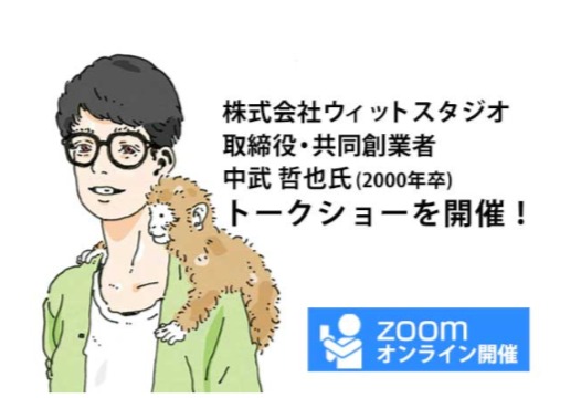 は、 エンタメ業界で活躍するトップクリエイターを招いたイベントを多数開催しています。 今回は2020年 7月よりフジテレビ「+Ultra」、BSフジほか各局にて放映中のアニメ『GREAT PRETENDER』をはじめ数々のヒット作品を生み出してきた(株)WIT STUDIOより、卒業生でもある中武哲也氏をゲストに迎えZoomを活⽤したオンライントークショウを8⽉8⽇(⼟)に開催します。