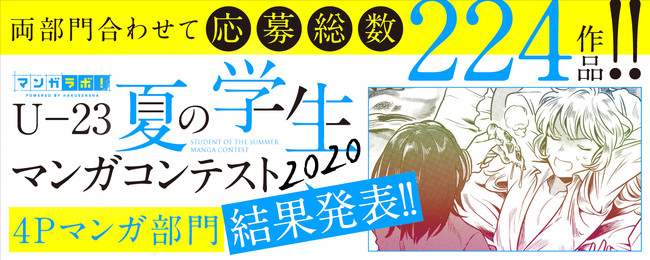 株式会社白泉社(本社:東京都千代田区、代表取締役社長:菅原弘文)が運営する全誌合同マンガ投稿サイト「マンガラボ!」にて開催されたコンテスト「U23-夏の学生マンガコンテスト」【一般マンガ部門】【4Pマンガ部門】両部門の受賞者が決定しましたので、お知らせいたします。今回のコンテストは、白泉社初の試みとして応募者を学生に限定し、部門を縦スクロールマンガを含む一般マンガ部門と、より参加しやすい4Pマンガ部門の2部門に分けて募集いたしました。多彩な才能にあふれた学生の応募者様から、両部門合わせて224作品もの投稿がありました。その中から選ばれた、一般マンガ部門は大賞1名、U-18大賞1名、奨励賞3名。4Pマンガ部門は大賞1名、U-18大賞1名、奨励賞5名。両部門で計50名の最終審査通過者を発表いたします。