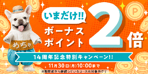 対象期間中、新たに月額コースにご登録いただいた方のボーナスポイントが2倍になるキャンペーンを実施します。