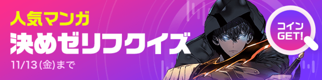 ピッコマでは、11/6(金)〜CMキャスト5人とコラボレーションした特別イベント「人気マンガ決めゼリフクイズ」(イベントページ:https://piccoma.com/web/event_detail/4878)が開催中となっております。