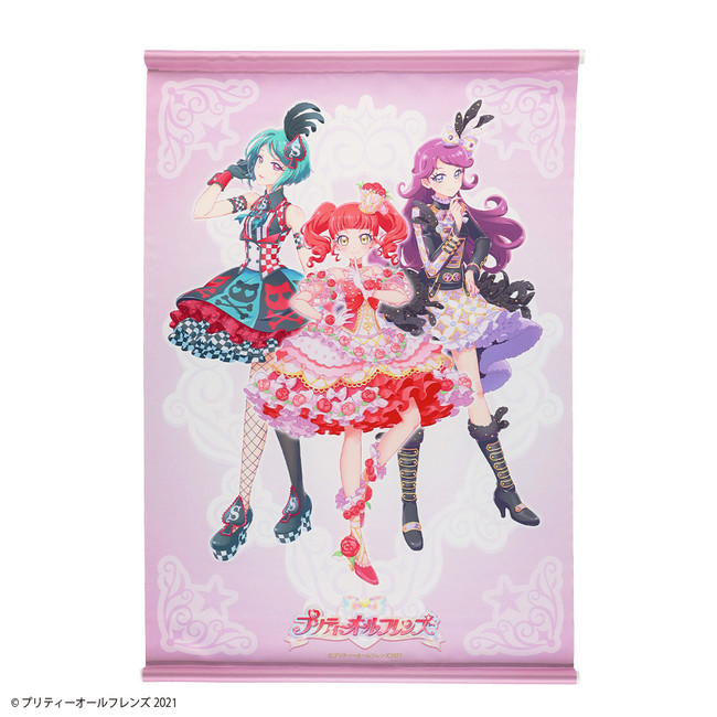 プリティーシリーズの歴代主人公が夢の共演を果たしたプリティーオールフレンズシリーズに、桃山みらいや萌黄えも、青葉りんかの「キラッとプリ☆チャン」のメンバーが登場。各メンバーのビッグアクリルスタンドとB2サイズのタペストリーが発売となります。