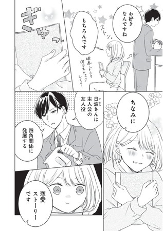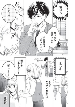 無名の新人女優・日波藤花の担当になったのは、辛口すぎるマネージャー・瀬名。傷つく正論を言われて凹む毎日だったが、ある日藤花に恋愛映画のメインキャストの役が舞いこむ。恋愛初心者で上手く演じられない藤花は、瀬名から恋愛を教えてもらうことになって……。女優×マネージャー、楽屋裏ラブレッスン。