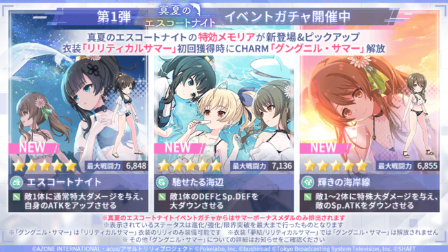 - 新登場の水着メモリアがピックアップされる第1弾 真夏のエスコートナイトイベントガチャも開催!