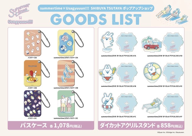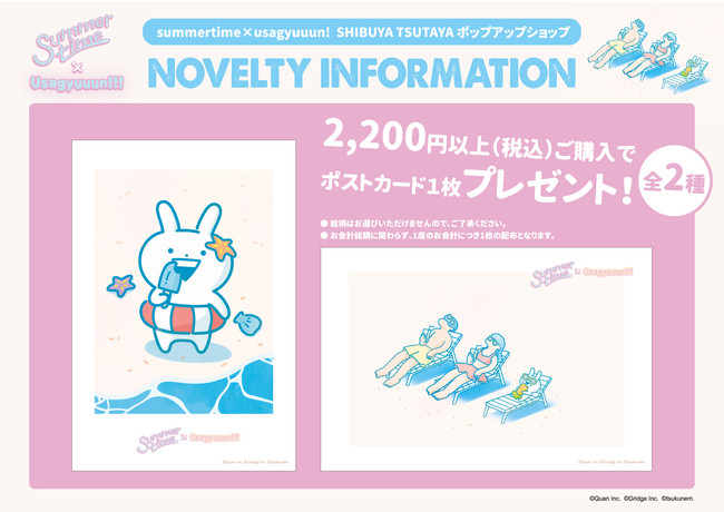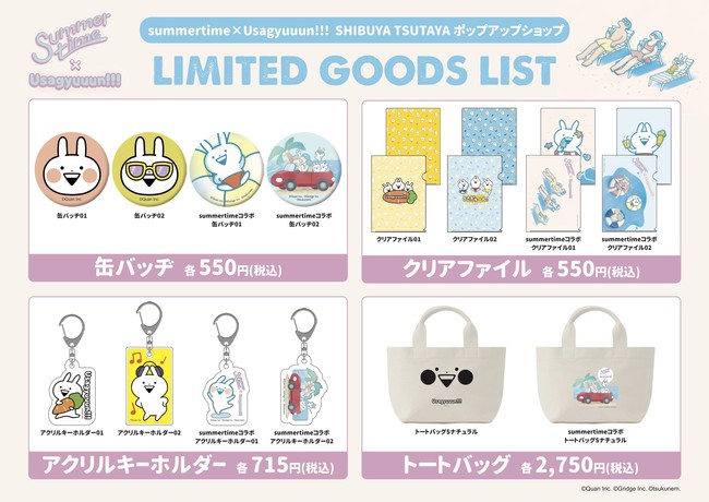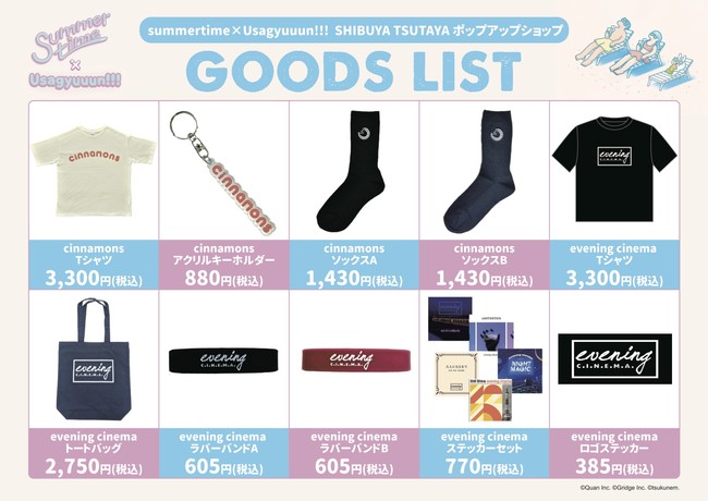 開催期間中、来場が叶わないお客様への対応として6月30日(水)~8月1日(日)の間TSUTAYAオンラインにてcinnamons × evening cinema「summertime」×「うさぎゅーん!」のコラボグッズの購入が可能です。