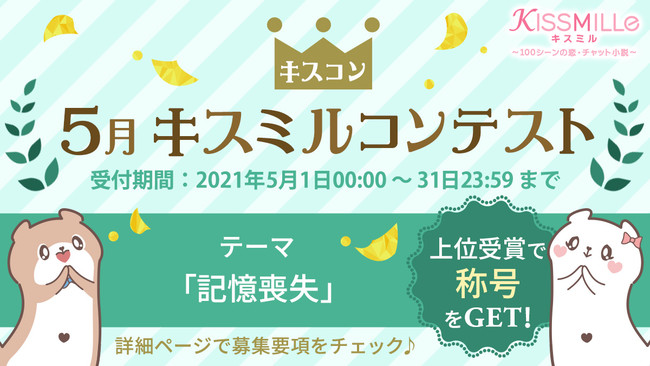 株式会社ボルテージ(本社:東京都渋谷区 代表取締役:津谷 祐司)は、提供中の恋愛チャット小説アプリ「KISSMILLe(キスミル) 100シーンの恋・チャット小説」(以下「キスミル」)にて開催した定期小説投稿コンテスト「5月キスミルコンテスト」の受賞作品を発表いたします。