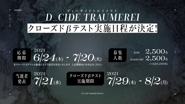 - スマートフォン向けゲームアプリ「ディーサイドトロイメライ」クローズドβテスト応募受付中!