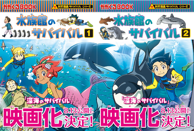 夏のアニメ映画「深海のサバイバル!」の原作本が、描きおろしのアニメスペシャルカバーになって書店店頭に並びます。原作『深海のサバイバル』限定カバーは、映画のビジュアルとは少し違うイラストとなっており、映画のキャラクター達が活躍する『水族館のサバイバル』(全2巻)もアニメ描きおろしカバーになって登場します。