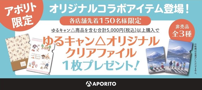 - 数量限定「ゆるキャン△」×「サンリオキャラクターズ」×「APORITO」オリジナルクリアファイル プレゼント