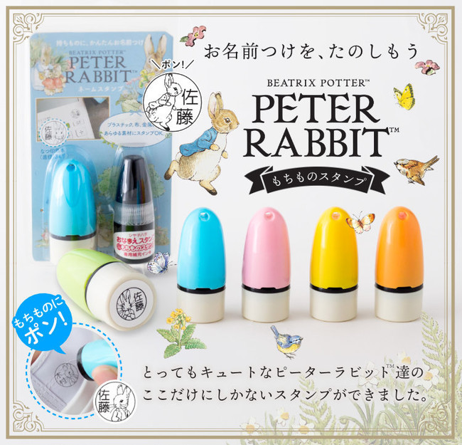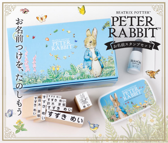 お子さまの持ちものへのお名前つけはややもすればおっくうな作業になりがちですが、世界中で100年以上愛されている物語「ピーターラビット™」の愛らしいキャラクターと一緒に楽しく簡単にお名前つけができる、「ピーターラビット™もちものスタンプ」と「ピーターラビット™お名前スタンプセット」。