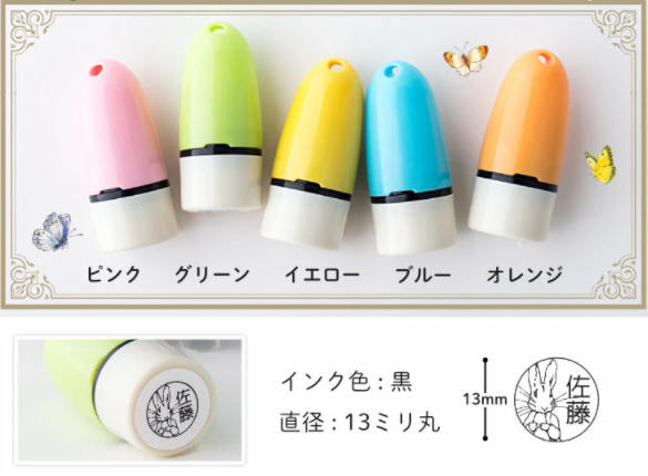 今回amazonサイトで販売開始したのは、かわいいピーターや仲間たちのイラストと好きな名前がいろんな持ちものにポンポン押せる「ピーターラビット™もちものスタンプ」と、いろんなサイズの持ちものにシンプルに名前がつけられるスタンプや専用インク、オリジナルBOXなどがセットになった「ピーターラビット™お名前スタンプセット」の2種類。