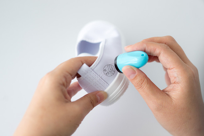 コップやお弁当箱、靴下やシャツ、上履き、マスクといったお子さまの持ちものはもちろん、事務用品やペットボトルといった他の人と混ざりやすい大人の持ちものにも使用OK。特殊なインクを使用し耐水性があるため、水洗いや洗濯をしても落ちにくいのが特徴です(しだいに少しずつ薄くなってきましたら再度スタンプし直してください)。