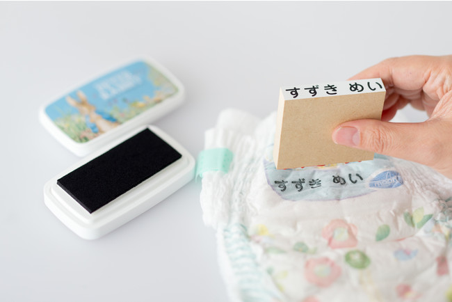 おむつやハンカチ、体操着、算数セットなど、あらゆる素材の持ちものに押すだけできれいに名前がつけられます。
