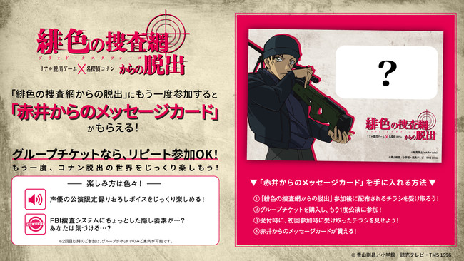 また、2つ目のキャンペーンとして、「赤井からのメッセージカード」がもらえる『「緋色の捜査網からの脱出」リピート参加キャンペーン』も開催!