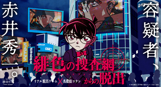 株式会社SCRAP(本社:東京都渋谷区 代表:加藤隆生)は、大人気テレビアニメ「名探偵コナン」とコラボレーションしたリアル脱出ゲームの最新作「緋色の捜査網(ブラッド・タスクフォース)からの脱出」の開催を記念して、「赤井の指名手配風待受画像」がもらえる『2つの”コナン脱出”参加キャンペーン』及び、「赤井からのメッセージカード」がもらえる『「緋色の捜査網からの脱出」リピート参加キャンペーン』を開催いたします。