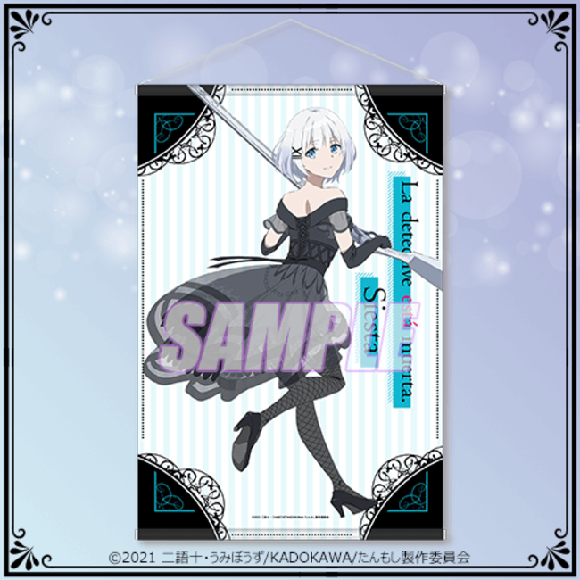 賞品は、TVアニメ「探偵はもう、死んでいる。」の描き下ろしイラストを使用したオリジナル商品です。S賞にはバスローブ姿のシエスタを描いたシーツをラインナップ。作中でも印象的な「あの日」を彷彿とさせるアイテムです。そのほか各賞、どの賞が当たってもシエスタの描き下ろしグッズが手に入る、くじ引き堂だけの“シエスタコレクション”をぜひお楽しみください。