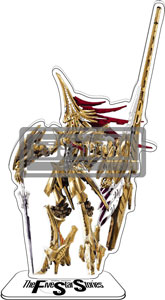 最新のデザイン画を使用した、全高約160mmの超大型アクリルフィギュア。作品ロゴも入った台座付きだ。
