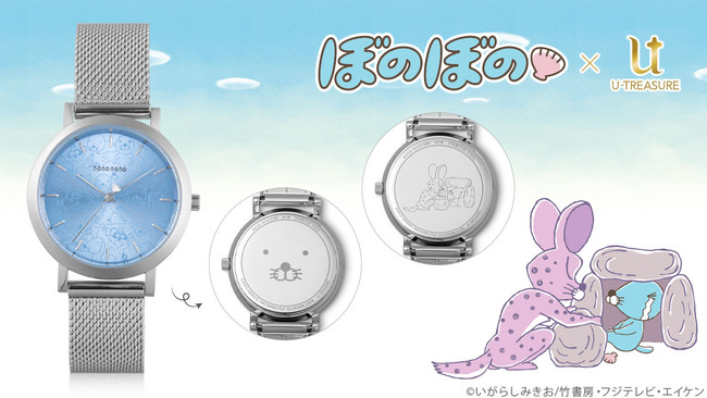 大人のための本格的なキャラクタージュエリーを扱うユートレジャー(東京都豊島区:代表取締役:伊藤 崇史)は、TVアニメ『ぼのぼの』の世界観をモチーフにした腕時計を8月17日(火)に発売いたします。このたびの新作は、「ぼのぼの」の優しい世界観を大切に、普段使いしやすいシンプルな文字盤で、性別や年齢、場所を問わず身に着けられる腕時計です。淡いブルーの文字盤は「ぼのぼの」をベースに様々なキャラクターをデザインしました。裏蓋のデザインは2種類を展開。ユートレジャー コンセプトストア池袋、ユートレジャーオンラインショップにて取り扱います。