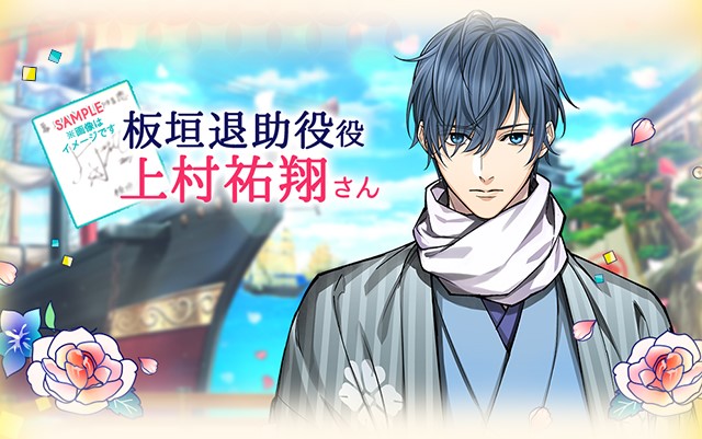 この度、板垣退助のボイス付きルートを配信いたしました。本編ストーリーにボイス付きのルート(天翔ルート)が追加され、担当声優の上村祐翔さんの声で本編をお楽しみいただけるようになります。