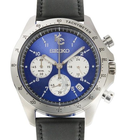 文字盤をメタリックなブルーに仕上げ、12時の位置に海馬コーポレーションのロゴ、下部のサブダイヤルには青眼の白龍のシルエットをレイアウトしています。
