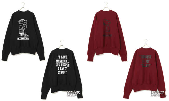 スヌーピーの生みの親、チャールズ・M・シルル 氏が1950年から描き始めたコミック「ピーナッツ」に登場するキャラクターをモチーフにしたスウェットをマドモアゼル ロペ限定で発売します。 ヴィンテージアイテムでも価値の高いシリーズで、フロントはコミックに登場するキャラクター、スヌーピー、チャーリー・ブラウン、ライナスの アートワークを採用、バックは劇中で発したセリフをプリントした、全4型をラインアップ。