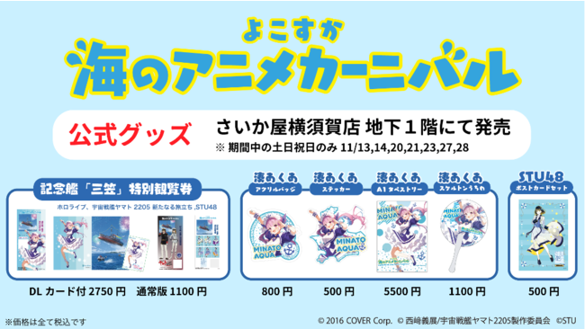 さいか屋横須賀店B1Fにて、『よこすか海のアニメカーニバル』公式グッズ等を販売します。