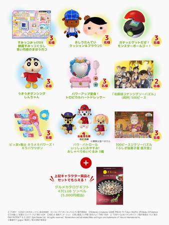 パズルのピースを集めて応募すると、キッズステーションで放送している人気キャラクターの豪華プレゼントと「日本全国選べるグルメギフト」が抽選で当たります。
