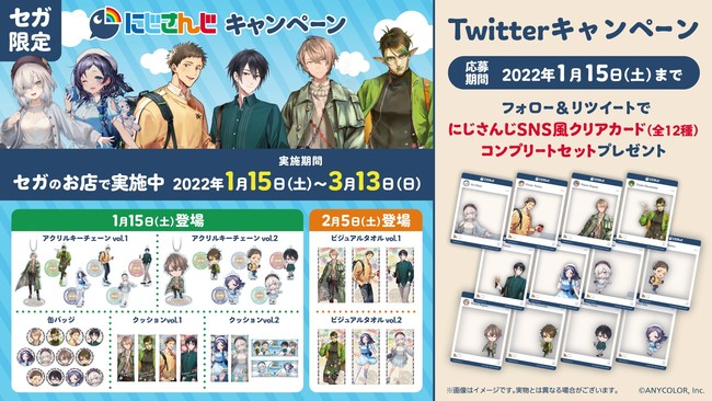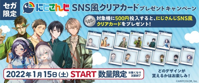 株式会社GENDA SEGA Entertainmentは、セガの対象店舗におきまして大人気バーチャルライバーグループ『にじさんじ』とコラボレーションした、『にじさんじSNS風クリアカードプレゼントキャンペーン』を実施いたします。