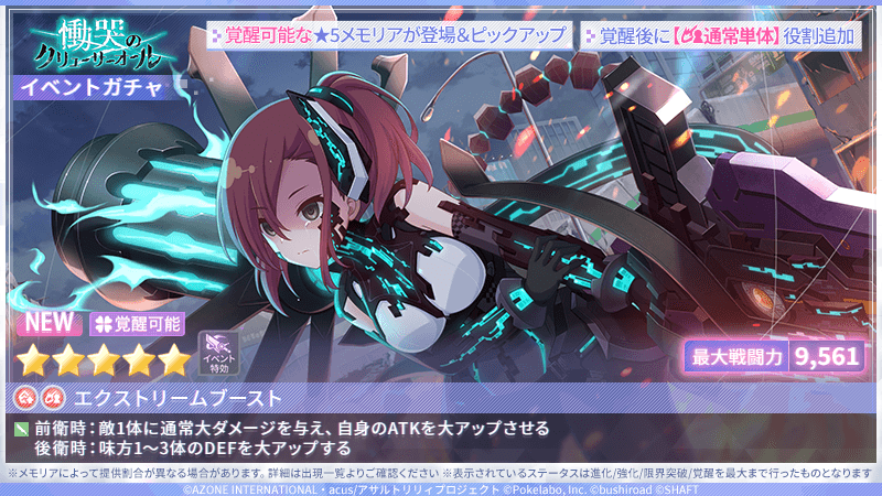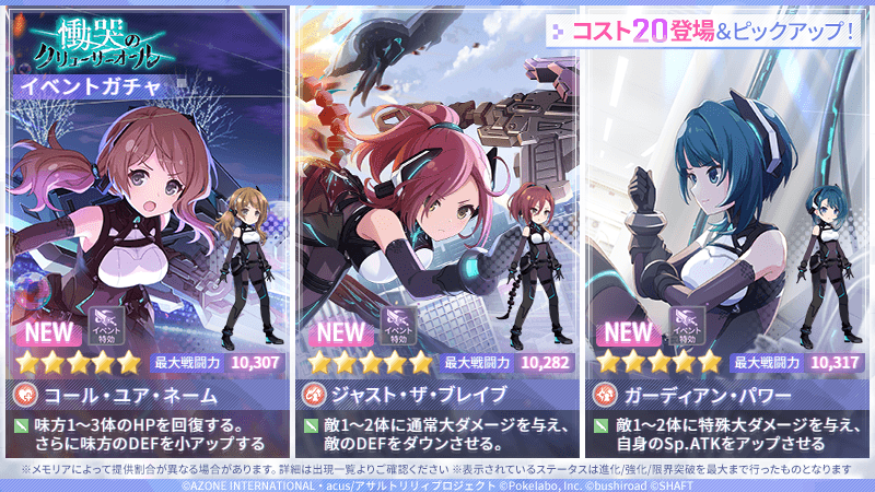 - 新★5メモリア「ジャスト・ザ・ブレイブ」「コール・ユア・ネーム」「ガーディアン・パワー」「エクストリームブースト」が登場するガチャを開催!