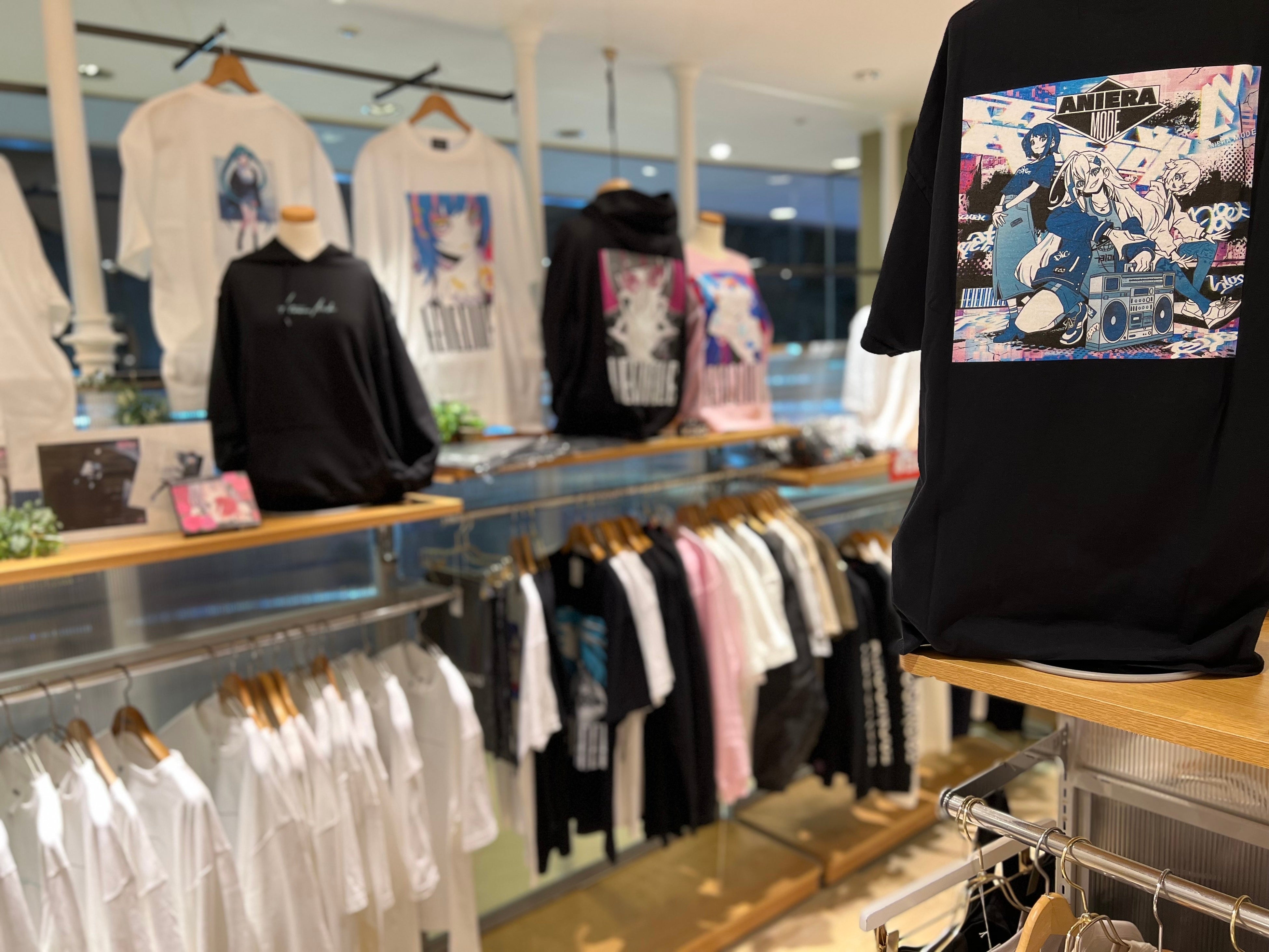店頭には自社ブランドである「ANIERA MODE」の他、全国からセレクトしたオシャレなアニメアパレルや雑貨が並びます。また、全国から買取したレアなアニメグッズも多数展開予定です。