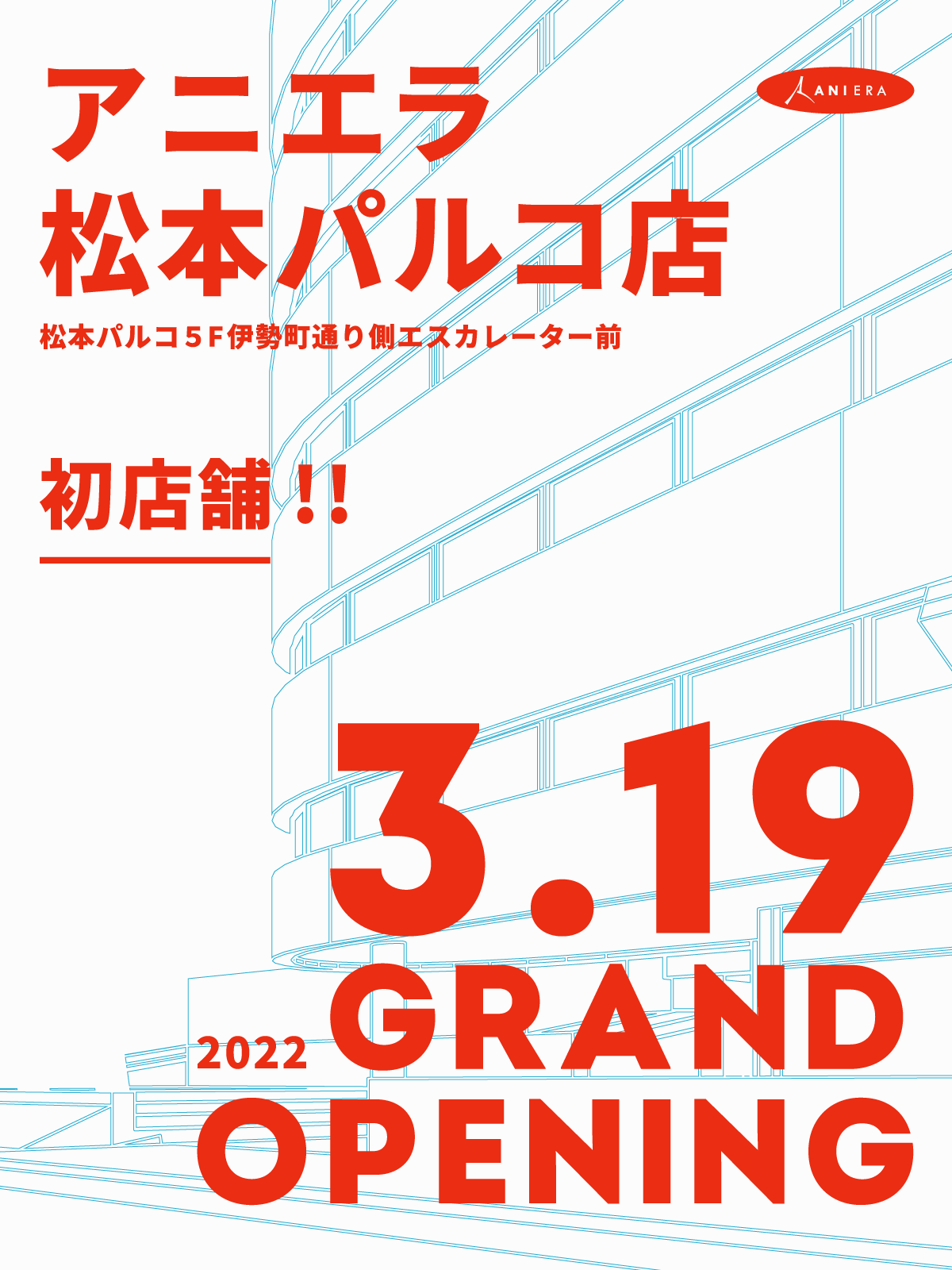 株式会社アニエラは、2022年3月19日(土)、初店舗を松本PARCO5階にオープンする。