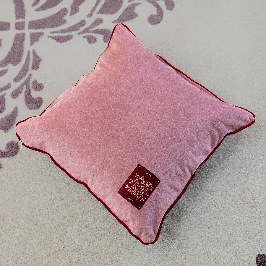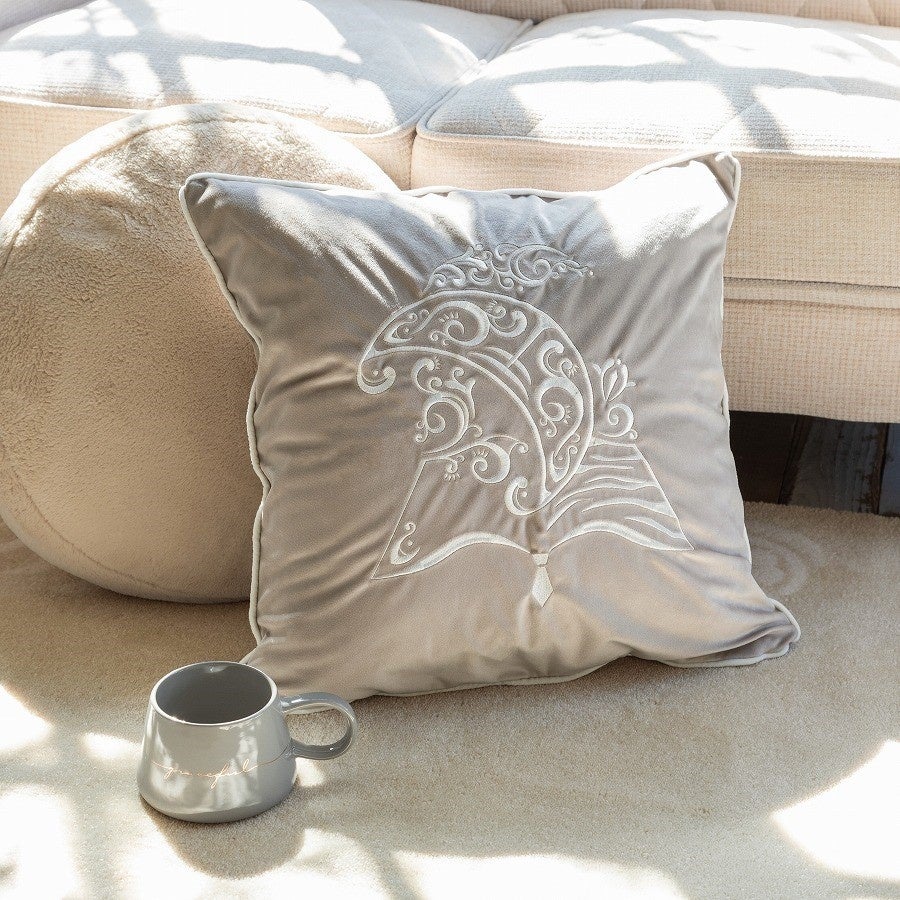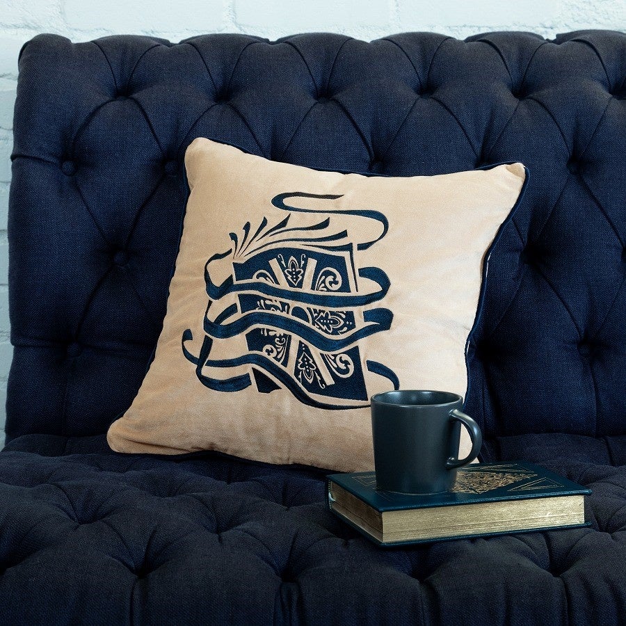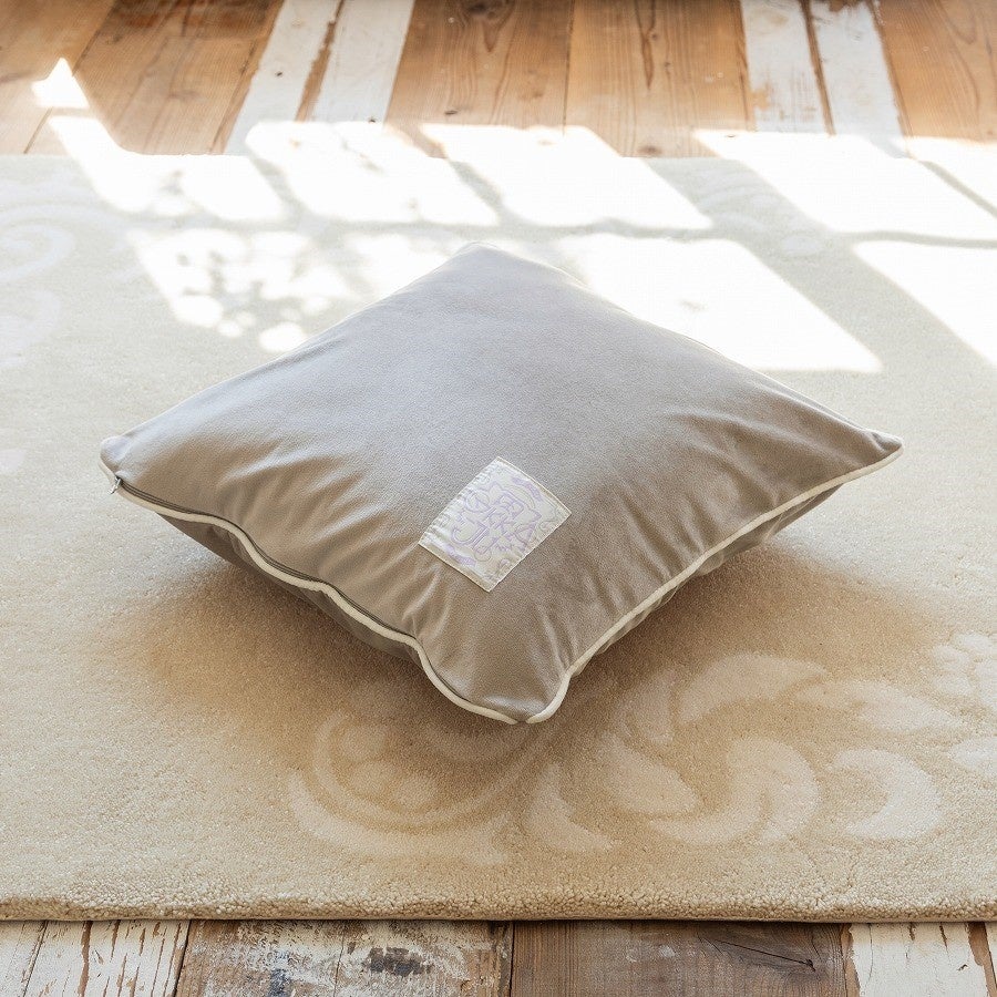 異能力「汚れつちまつた悲しみに」、「帽子」、「ワイン」等をイメージした刺繍をあしらったクッションカバー。ほど良い起毛感と微光沢な素材感が、お部屋をプチグレードアップしてくれます。裏側の織ネームもポイントです。