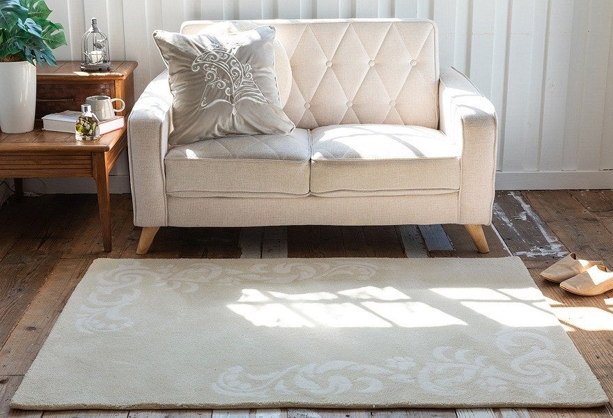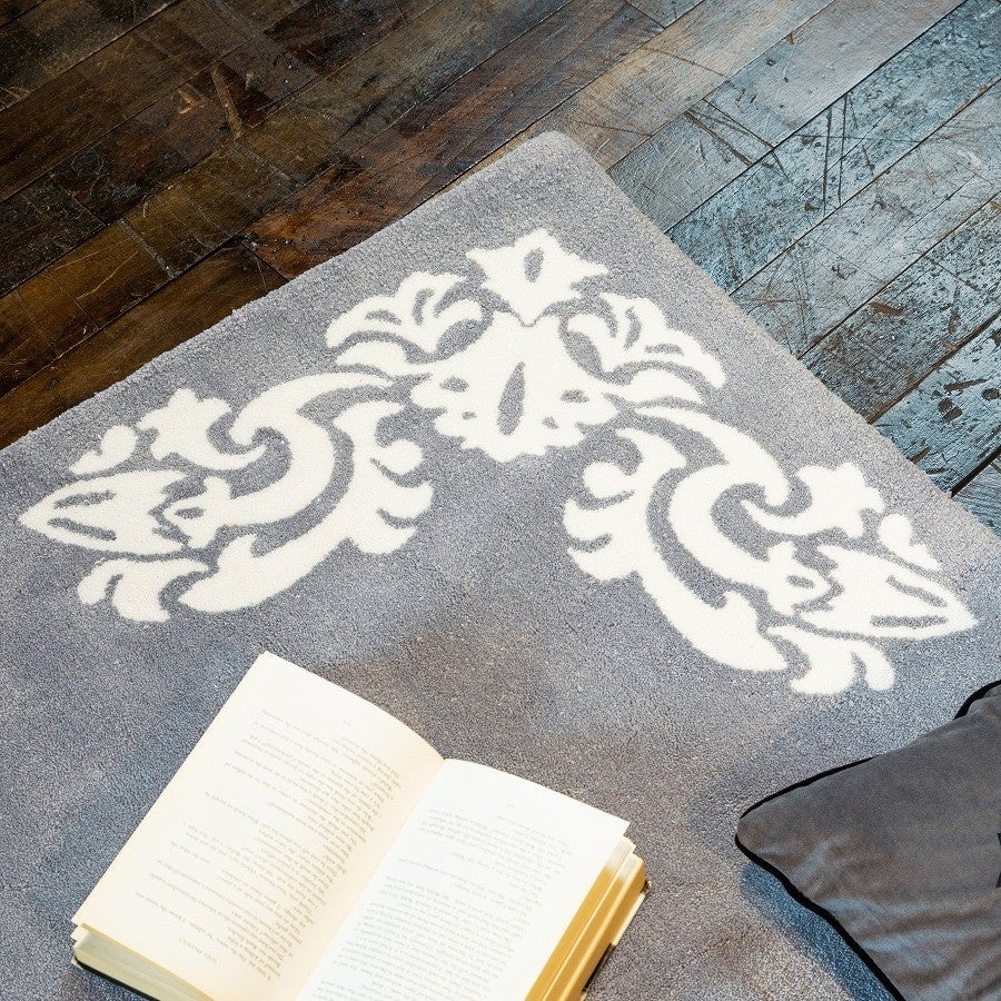 ダマスク調の模様に、芥川龍之介の異能力「羅生門」、首元の「スカーフ」等のイメージを散りばめた、UULオリジナルテキスタイルのラグマット。落ち着きのある色みと、毛足のあるリッチな感触で、高級感のある仕上がりです。
