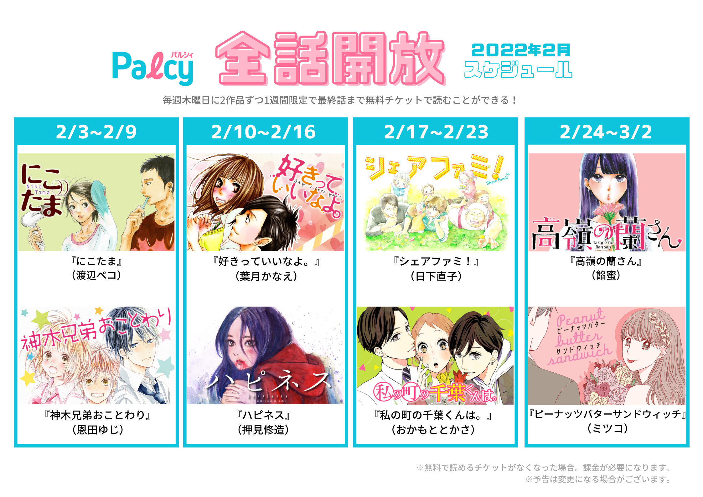 マンガアプリPalcy(パルシィ)にて2022年2月に全話開放する作品を一挙ご紹介!