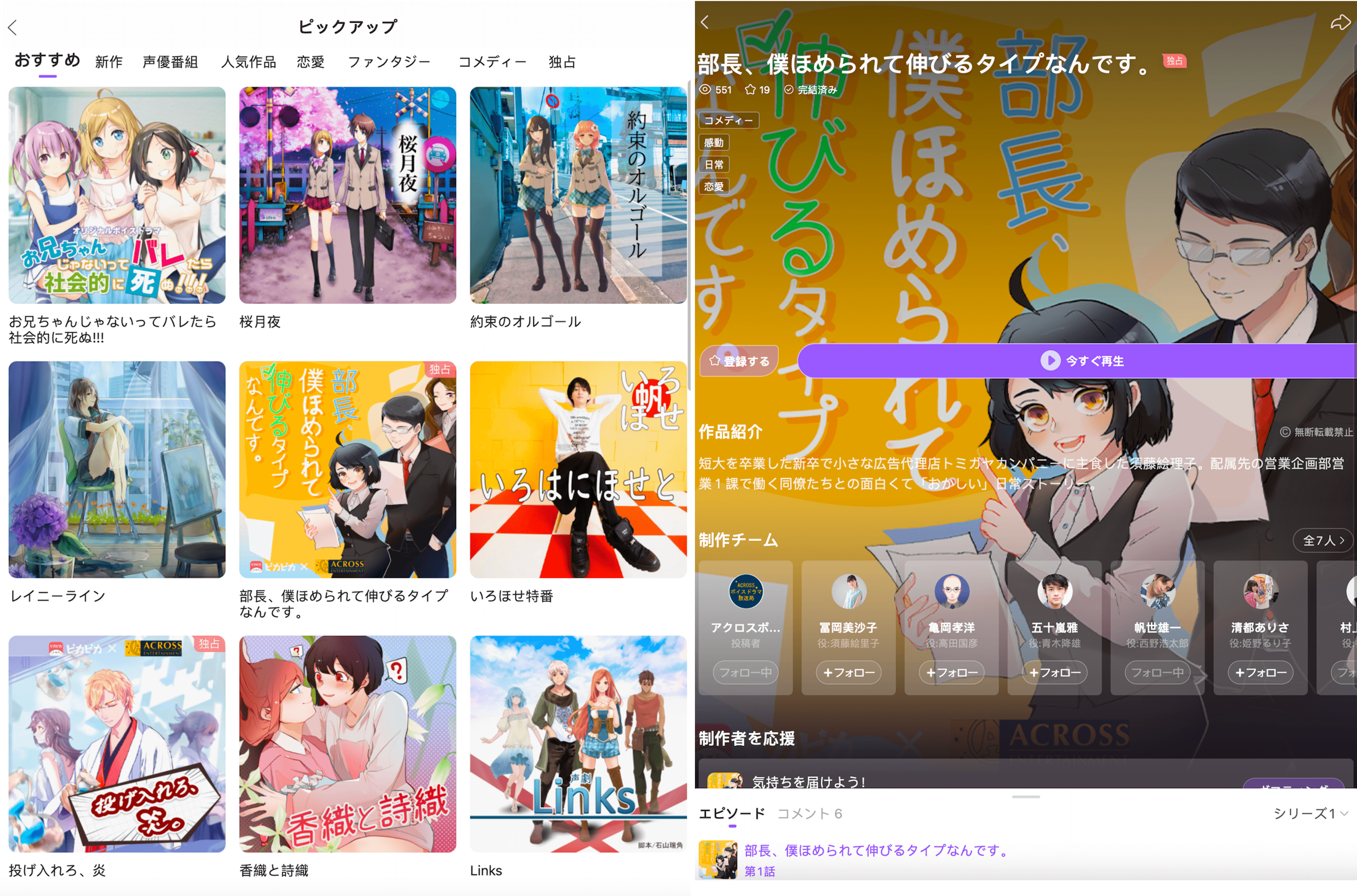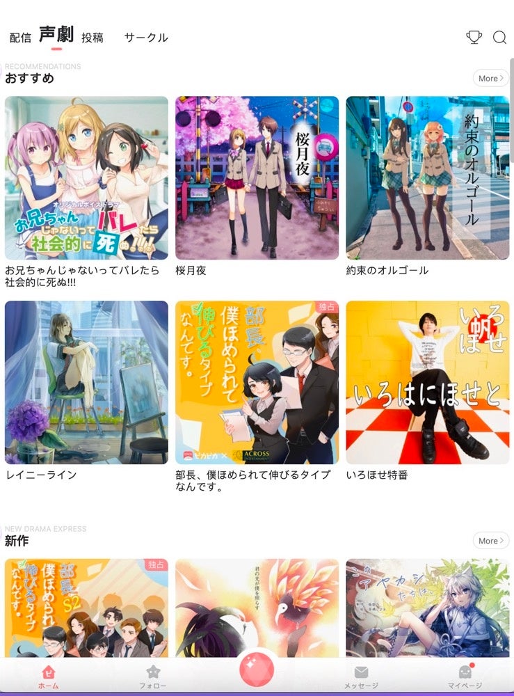 2022年1月13日より声劇を視聴する新機能をリリースし、「声劇」エリアを追加しました。「ボイスドラマ」のコンテンツをより便利に視聴できるようになりました。