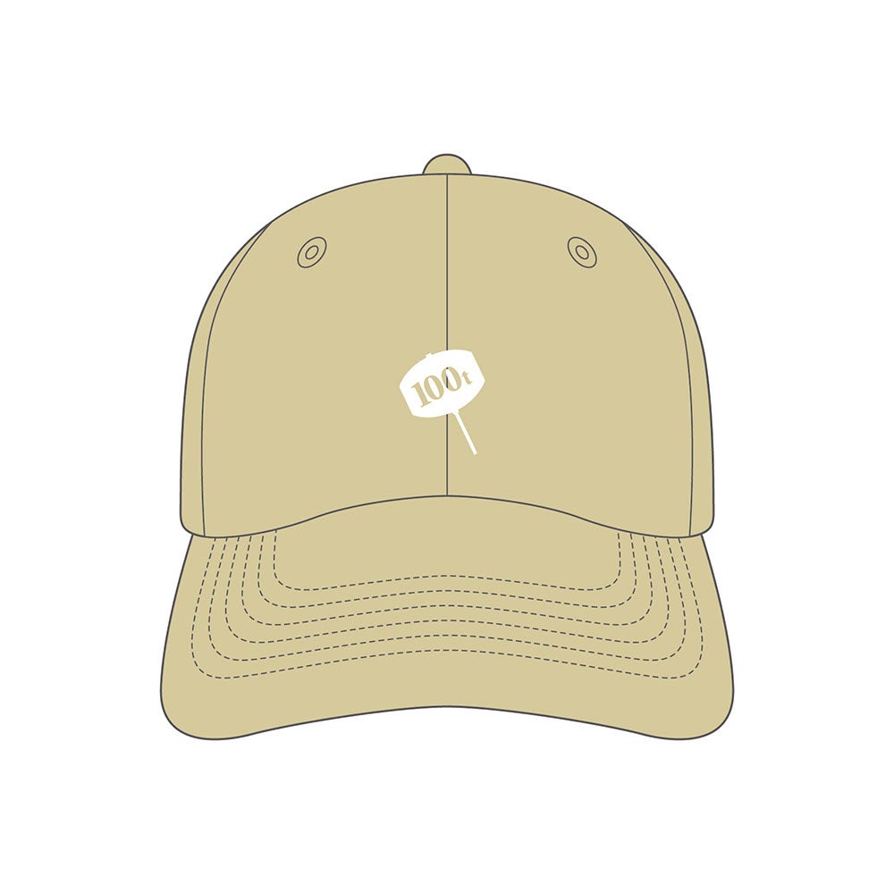 100tハンマーのワンポイントの刺繍が可愛いベージュのキャップ。