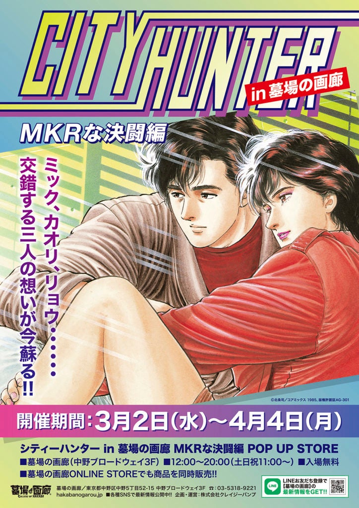 マンガ、アニメ、特撮などを始めとするサブカルチャーをテーマとした企画展を開催・運営している株式会社クレイジーバンプは3月2日(水)より【シティーハンターPOP UP STORE〜MKRな決闘編〜】を開催致します。(https://hakabanogarou.jp/archives/25900)