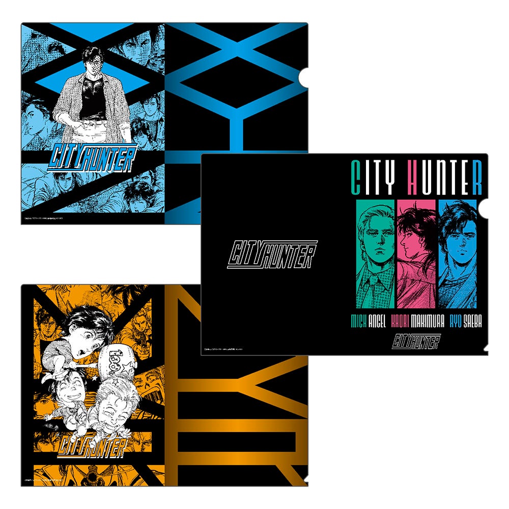 XYZ、MKRなデザインにミック・香・獠のイラストを落とし込んだクリアファイルセット。