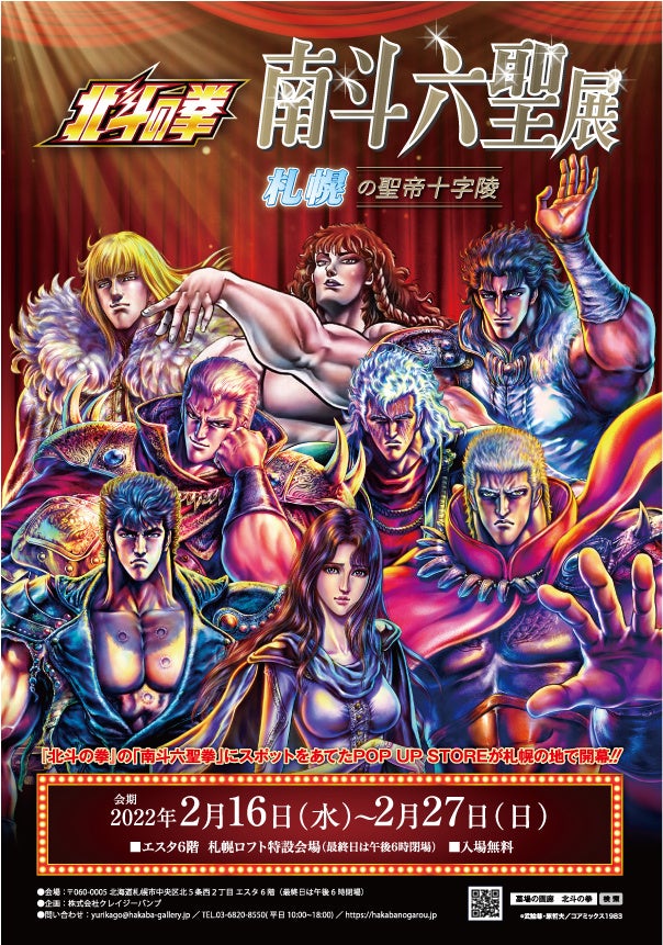 マンガ、アニメ、特撮などの人気コンテンツをテーマにした企画展を開催、運営している株式会社クレイジーバンプは、2021年2月16日(水)より札幌ロフトにて【北斗の拳・南斗六聖展 札幌ロフト】(https://hakabanogarou.jp/?p=24866)を開催いたします。