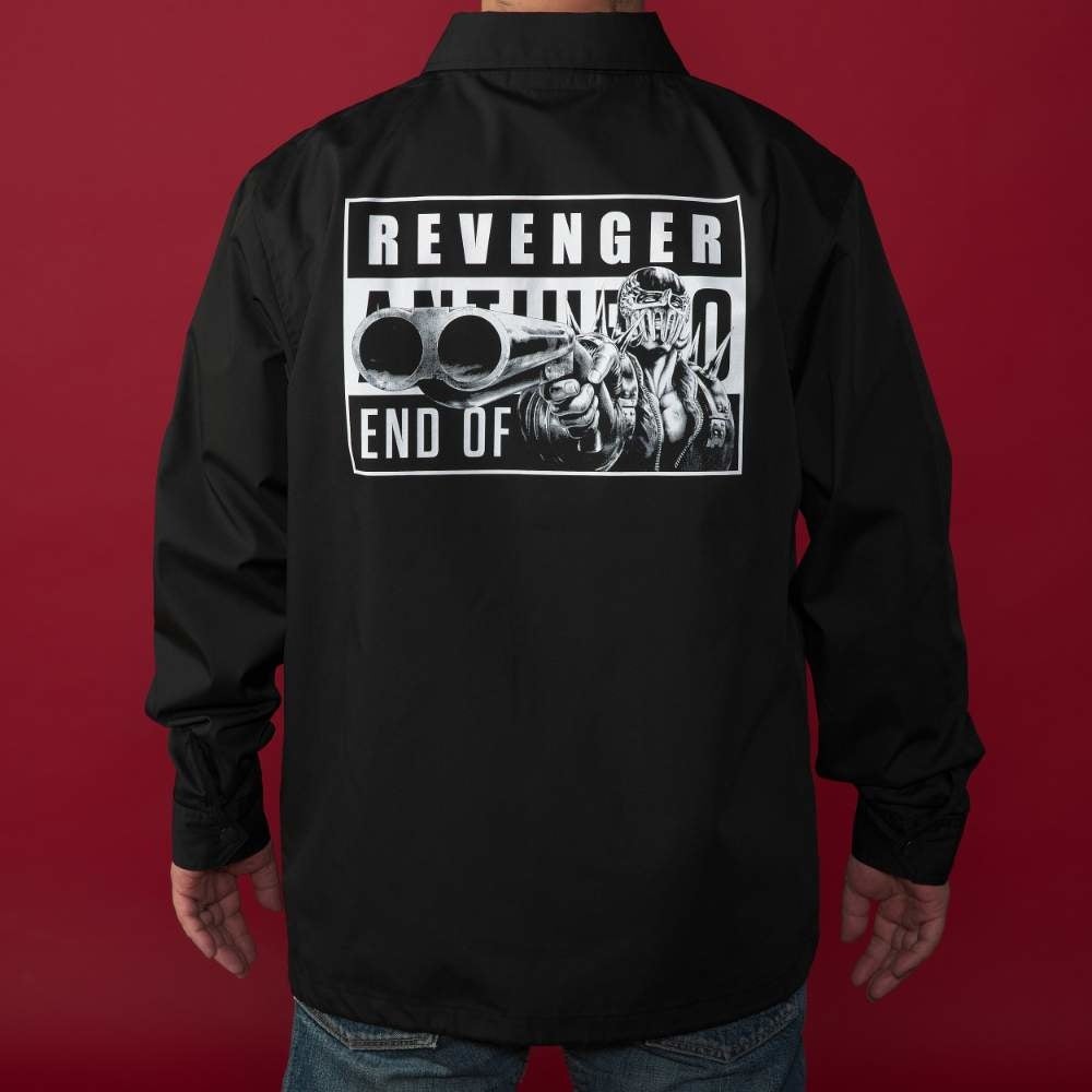 ジャギをイメージしたエンブレムとイラストをデザインしたチーム風コーチジャケット。