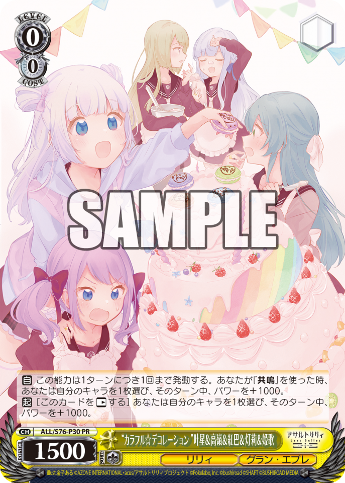 ・ アサルトリリィ×ヴァイスシュヴァルツ 3ヶ月連続PRカード企画 第2弾「“カラフル☆デコレーション”叶星&高嶺&紅巴&灯莉&姫歌」