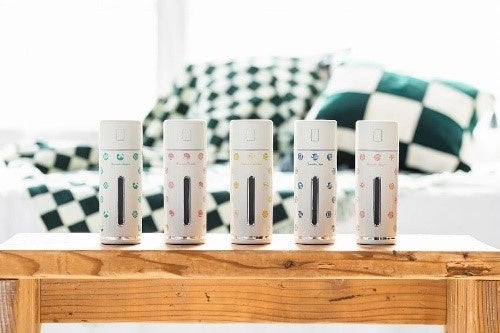 テレビアニメ「鬼滅の刃」より、幅約5.4cm×奥行約5.4cm×高さ約15.2cmのデスク周りで使うのにちょうど良いサイズのミニ加湿器が発売決定!ラインナップは竈門炭治郎、竈門禰豆子、我妻善逸、冨岡義勇、煉獄杏寿郎の5種。それぞれのキャラクターのイメージをデザインに落とし込み、お部屋だけでなくオフィスでも使えるデザインです。水溶性アロマオイルとアロマウォーターが使えるので、お気に入りの香りに包まれながらお部屋を加湿できます。