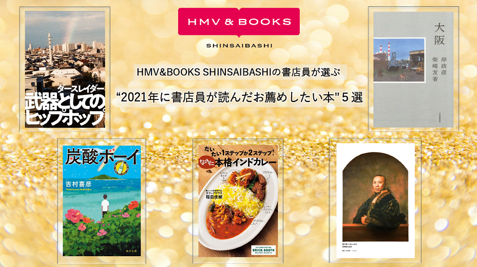 今回は、HMV&BOOKS SHINSAIBASHI書店員の柴田健太郎が2021年に読んだ本の中から、ぜひ皆さんにも読んで欲しいと思うおススメ本を5冊厳選しました。小説やエッセイだけでなく料理本やヒップホップ論まで・・・幅広いラインナップとなっています。あまり読むことのないジャンルの本を読む”きっかけの1冊”にいかがでしょうか?