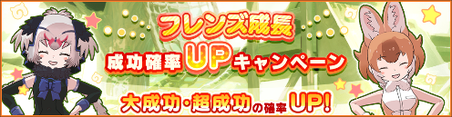 期間中、フレンズのLv.強化時に「大成功」と「超成功」の発生確率がUPします。