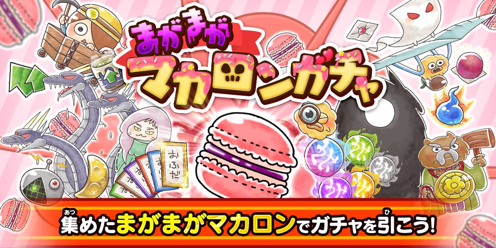 バレンタイン期間限定のイベント専用ガチャ「まがまがマカロンガチャ」を開催いたします。
