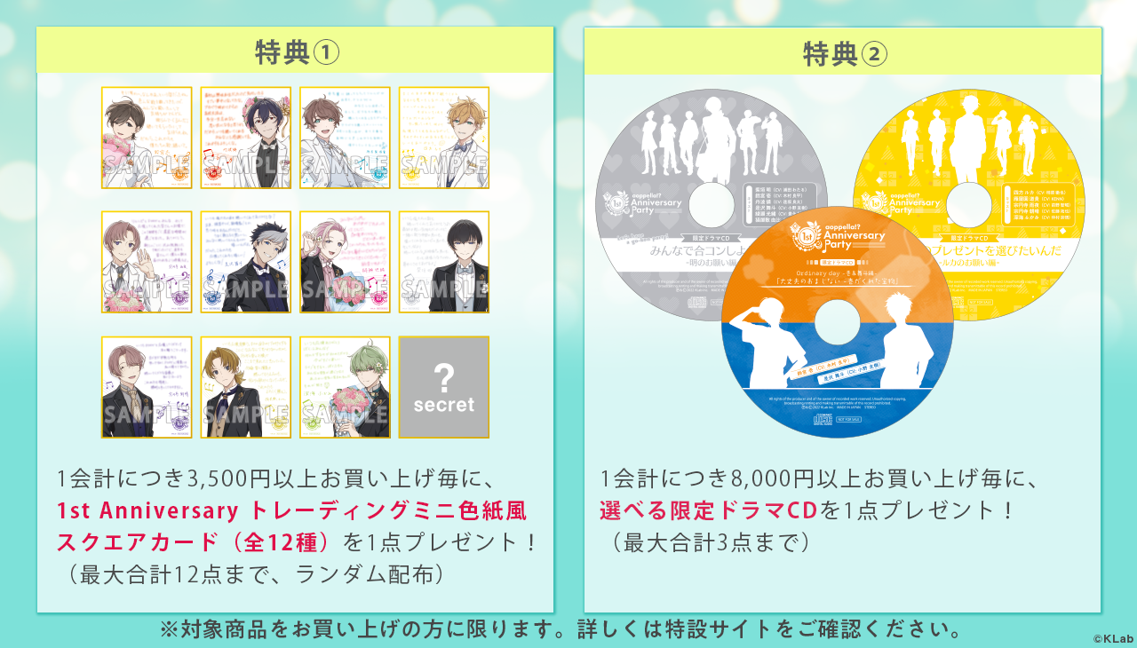 「アオペラ -aoppella!?- 1st Anniversary Party」 グッズ購入特典について