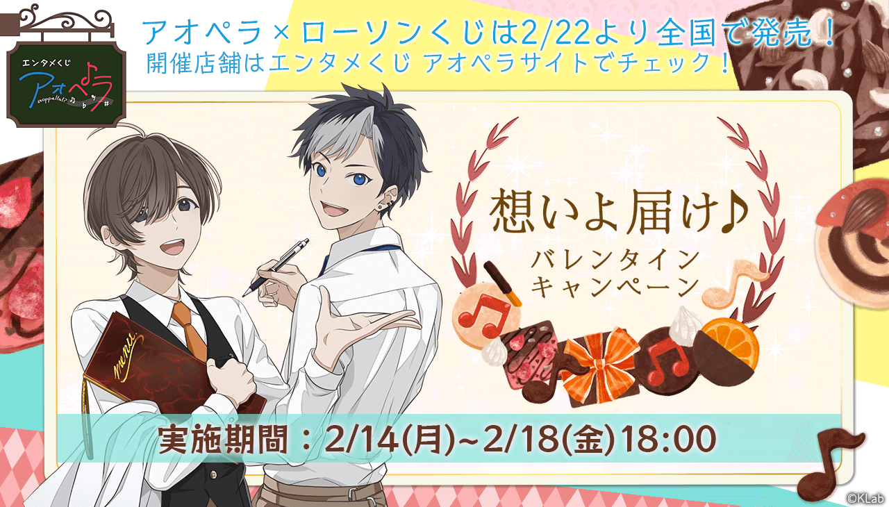 - 『アオペラ』バレンタイン第2弾!「想いよ届け♪バレンタインキャンペーン」が本日2/14スタート!!