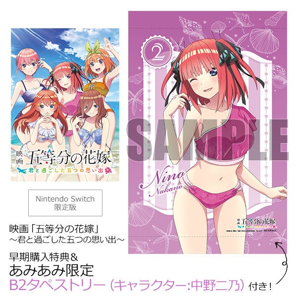 - PS4/Nintendo Switch用ソフト『映画「五等分の花嫁」 ~君と過ごした五つの思い出~』の限定版と通常版を、あみあみ限定特典付きでそれぞれ予約受付中。