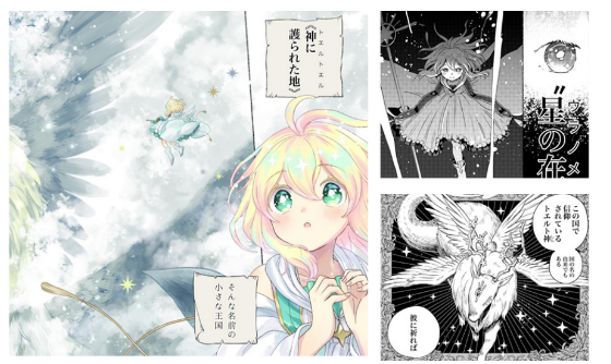 【編集部コメント】神秘に満ちたファンタジー世界を確かな画力とビジュアルイメージで隅々まで描き出しており、読んでいて圧倒されました。まっすぐで可憐な主人公も魅力的で、多彩な表情や動きに華やかさがありました。応募作の中で頭一つ抜けている完成度で、大賞にふさわしい作品と評価致しました。