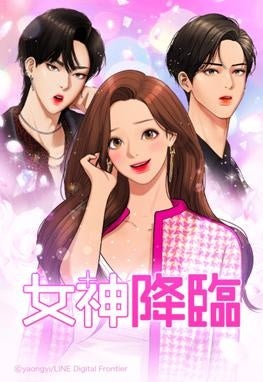 原作webtoon『女神降臨』は、失恋をキッカケにメイクテクニックに磨きをかけ、地味でさえない素顔から一変、皆がクギづけとなる「女神」への変身を成し遂げた谷川麗奈が主人公の人気マンガです。圧倒的な画力で描かれるイケメン2人とのラブストーリーや、思わず真似したくなるメイクアップのやり方など、あらゆる世代の女子が注目する要素が満載で、国内でも累計6億回以上閲覧(※1)されており、グローバルでは累計53億回以上閲覧(※2)されているLINEマンガの人気作品です。