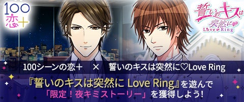 株式会社ボルテージ(本社:東京都渋谷区 代表取締役:津谷 祐司)は、当社が提供中のボル恋タイトル「誓いのキスは突然に Love Ring」(以下、「誓キス」)と「100シーンの恋+」(以下「100恋+」)が2月16日(水)より期間限定コラボレーションを実施することをお知らせいたします。